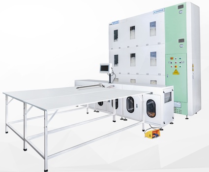 Answer: The down filling machine with 2 filling nozzles and 6 weighing scales, and ensure continuous filling.